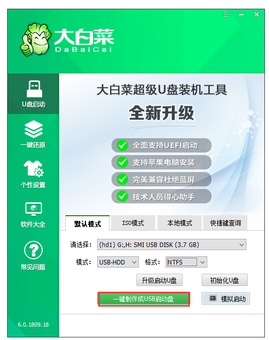 3、 點(diǎn)擊“一鍵制作成USB啟動(dòng)盤”