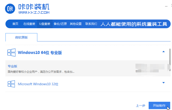 2、選擇需要安裝的系統(tǒng),點(diǎn)擊開始制作。