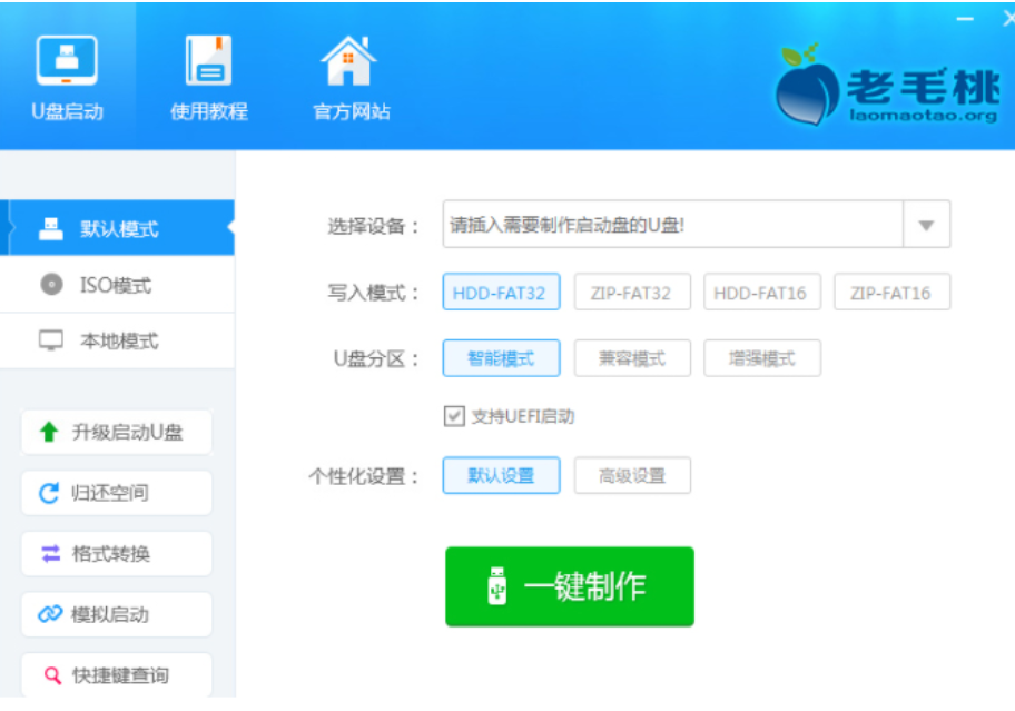 老毛桃u盤啟動盤制作工具是一款可以將u盤制作成啟動u盤的專業(yè)u盤啟動盤制作工具。告別繁瑣,簡單易用,一盤兩用,攜帶方便。寫入保護,防止病毒侵襲,讀寫速度快,安全穩(wěn)固。自由更換系統(tǒng),方便快捷,全面兼容新舊配置。