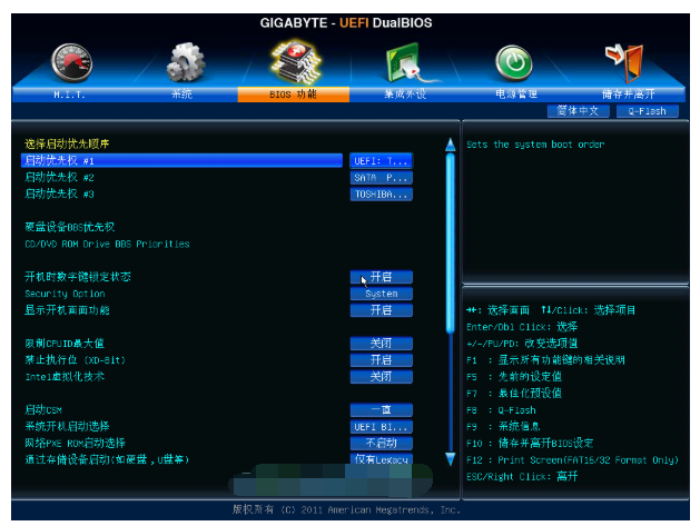 1、首先插入安U盤啟動(dòng)盤,然后啟動(dòng)電腦,在出現(xiàn)開機(jī)界面后馬上按下“DEL”鍵。2、進(jìn)入bios界面之后,按“左右方向鍵”切換到BIOS功能,然后選擇“啟動(dòng)優(yōu)先權(quán)#1”,按回車進(jìn)入。