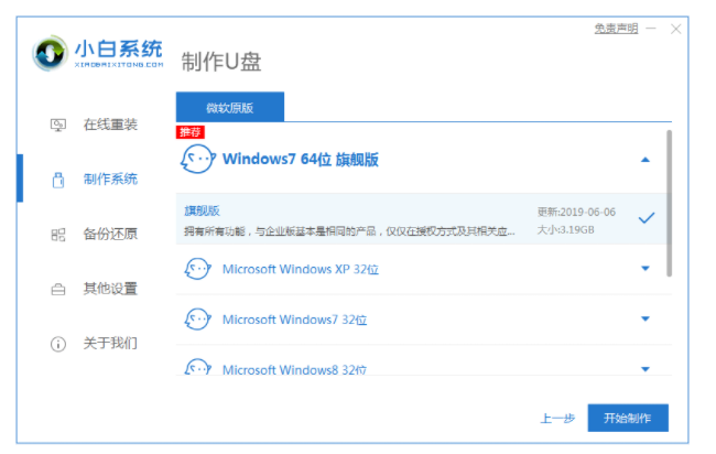 2、選擇自己想要安裝的系統(tǒng)半盤下載到U盤去。