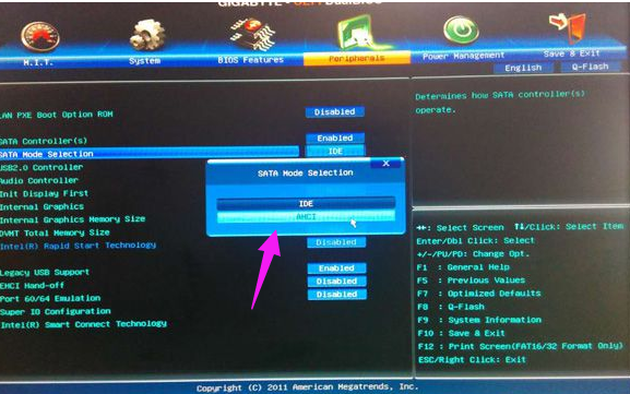 1、u盤分區(qū)的方法,首先插入U盤,進BIOS界面開啟硬盤AHCI模式