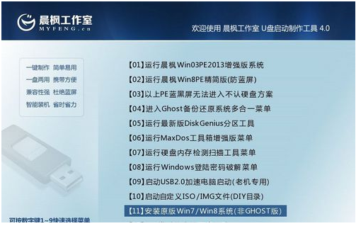 1、首先用晨楓U盤啟動制作工具啟動U盤。