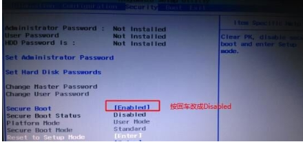 1、聯(lián)想bios設(shè)置u盤啟動(dòng)項(xiàng)怎么操作?重啟電腦時(shí)快速按F2或(FN+F2)進(jìn)入BIOS界面,通過方向鍵切換【Security】選項(xiàng)卡界面下,選擇【Secure Boot】按回車鍵修改成【Disabled】即可。