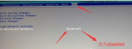 2、切換到【Exit】選項(xiàng)界面下,將【OS Optimized Defaults】設(shè)置為【Disabled】即可。