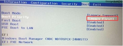 4、將【Boot Priority】設(shè)置成【Legacy First】,按下F10選擇yes即可。