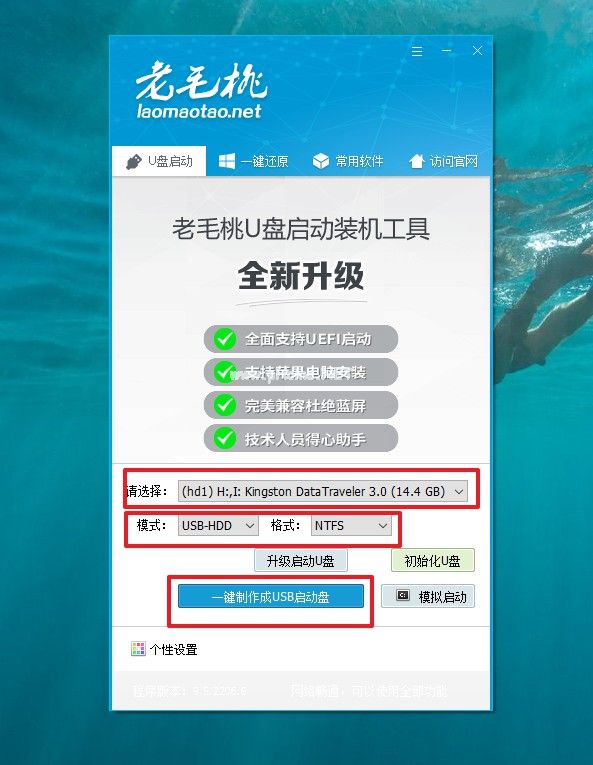 2、準(zhǔn)備一個(gè)容量為8G或以上的u盤(pán),通過(guò)老毛桃u盤(pán)裝機(jī)工具,將它制作u盤(pán)啟動(dòng)盤(pán)。