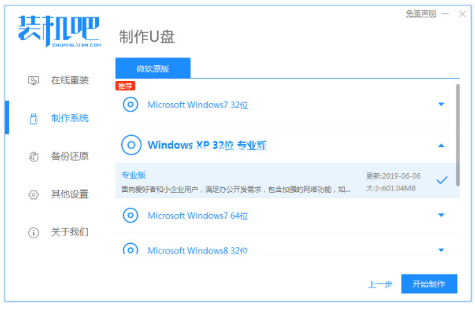 2、選擇需要的win7系統(tǒng)制作u盤啟動盤。