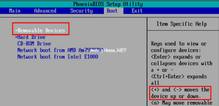 3、將“removeble device”移動至最上面,按“+鍵”實(shí)現(xiàn)向上移動。