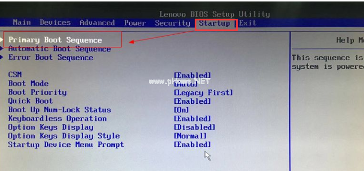 3、進(jìn)入到BIOS界面后,選擇startup選項(xiàng)。