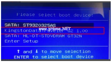 2、彈出啟動菜單,選擇第二項,即“KingstonDataTraveler G2 1.00”,回車