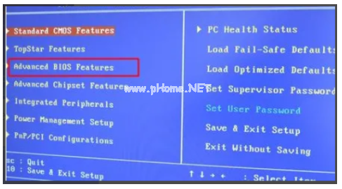 3、BIOS設(shè)置進(jìn)入U盤啟動,選擇“Advanced BIOS Features”,回車