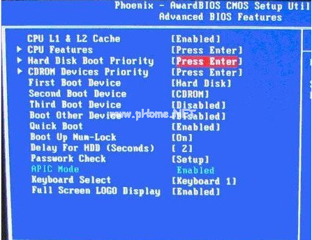 2、在Advanced BIOS Features設(shè)置界面內(nèi),選擇(硬盤(pán)啟動(dòng)優(yōu)先級(jí))Hard Disk Boot Priority進(jìn)入到BIOS開(kāi)機(jī)啟動(dòng)項(xiàng)優(yōu)先級(jí)選擇。