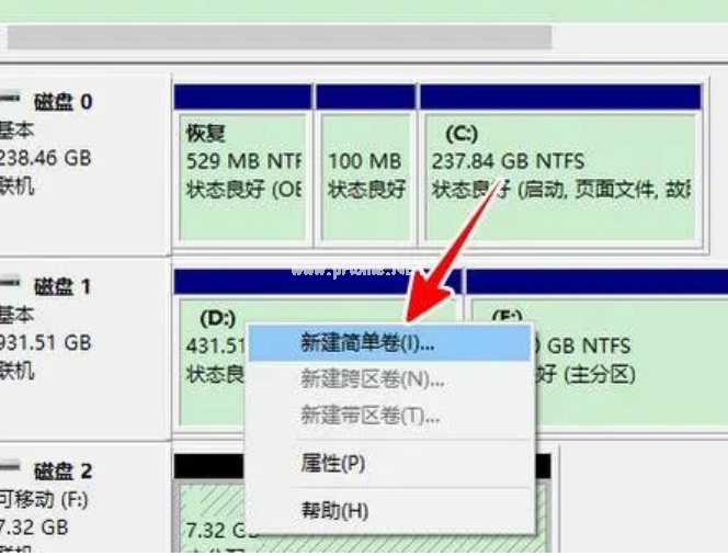 方法二:進磁盤管理內(nèi)新建u盤卷