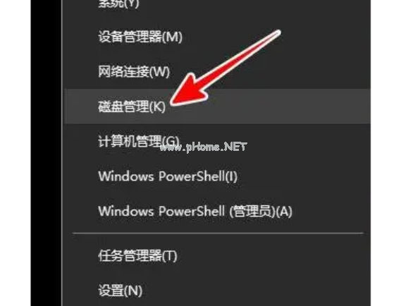 1、首先將U盤插入電腦,然后鼠標(biāo)右鍵點擊桌面左下方的開始菜單,點擊“磁盤管理”進入。