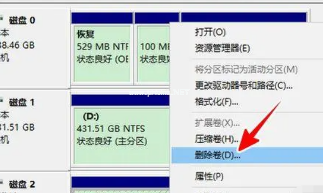 2、接著找到U盤并右擊鼠標(biāo),點擊“刪除卷”。