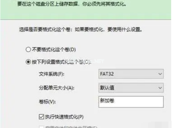 6、選中“按下列設(shè)置格式化這個卷”,設(shè)置保持默認(rèn)即可。