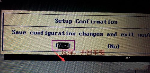 完成設置之后,我們一般用F10來保存(PS頁面下方也有提示哦),在彈出的對話框,我們選擇或者輸入“Y”來保存,這個時候電腦會自動重啟,我們的設置就生效啦。(這個電腦直接在yes地方敲擊回車鍵就可以啦。)