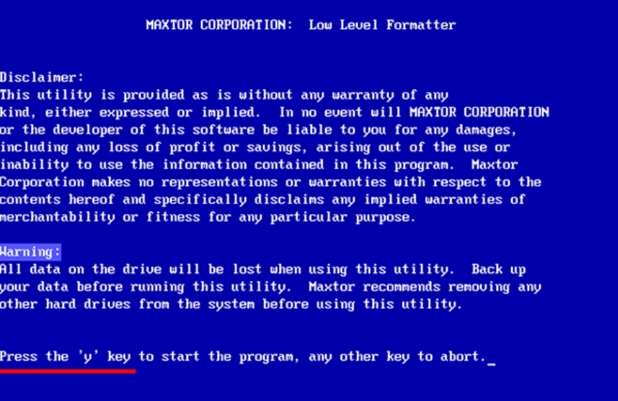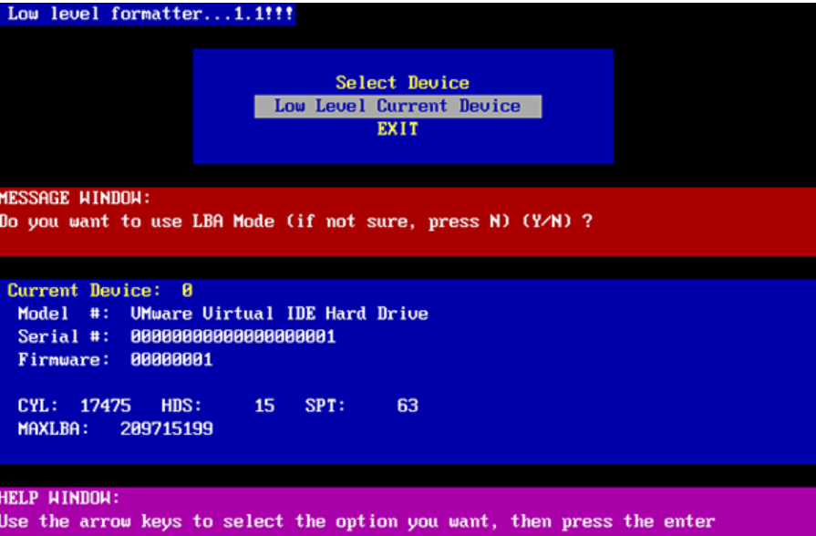 5、隨即會有一個詢問是否進(jìn)行低格操作的英文提示,按Y鍵確認(rèn)執(zhí)行,如下圖所示:
