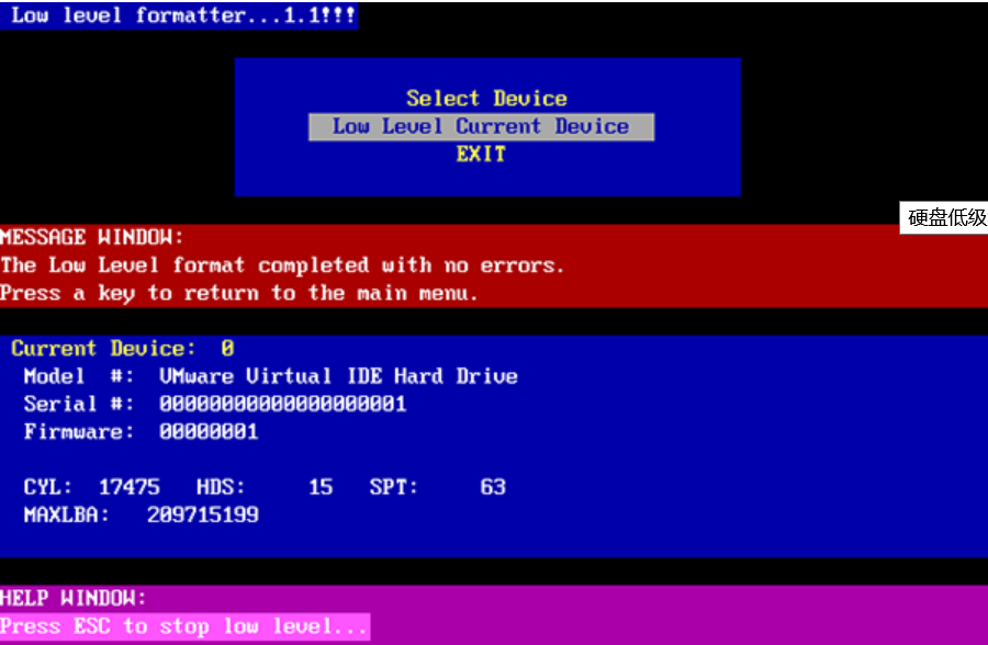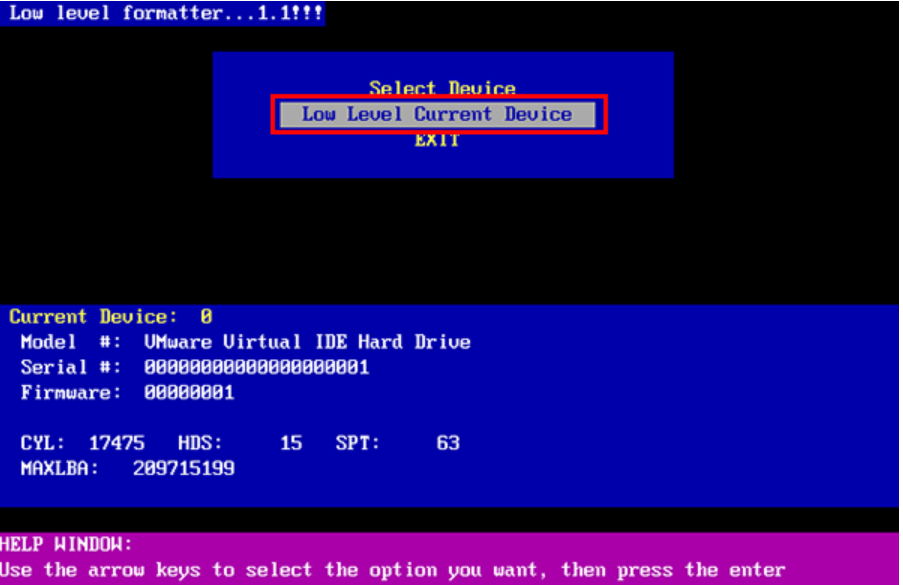 4、然后使用上下方向鍵選擇Low Level Current Device,按回車鍵確認(rèn)選擇,如下圖所示: