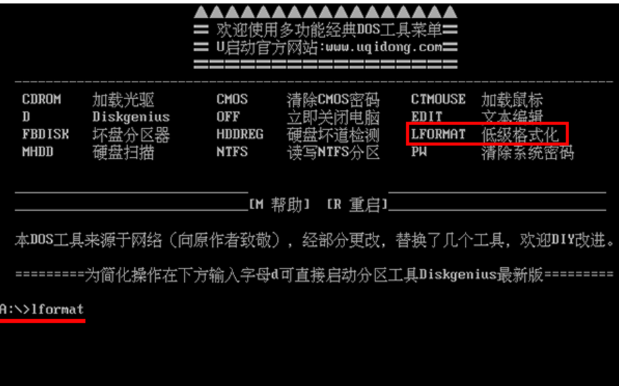 2、隨后在屏幕光標(biāo)處輸入lformat,再按回車鍵執(zhí)行,如下圖所示:
