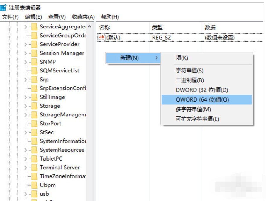 5、創(chuàng)建成功之后打開(kāi)StorageDevicePolicies,在空白處單擊右鍵,然后點(diǎn)擊新建-DWORD值,命名為WriteProtect。