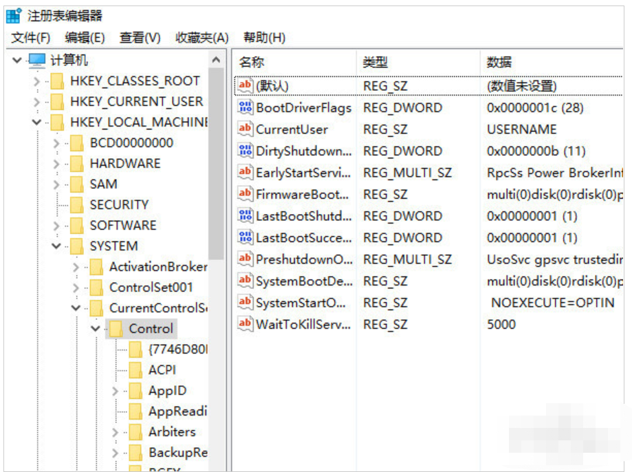 2、然后依次打開(kāi)HKEY_LOCAL_MACHINE \ SYSTEM \ CurrentControlSet \ Control,選中之后看看右側(cè)是否有“StorageDevicePolicies”,如果沒(méi)有就需要新建。