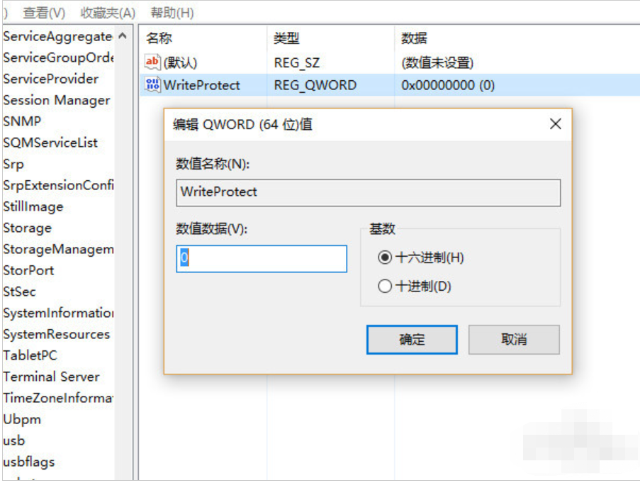 6、然后在點(diǎn)擊WriteProtect。 把WriteProtect的數(shù)值數(shù)據(jù)設(shè)置為0,然后點(diǎn)擊確定之后插入U(xiǎn)盤(pán)即可。