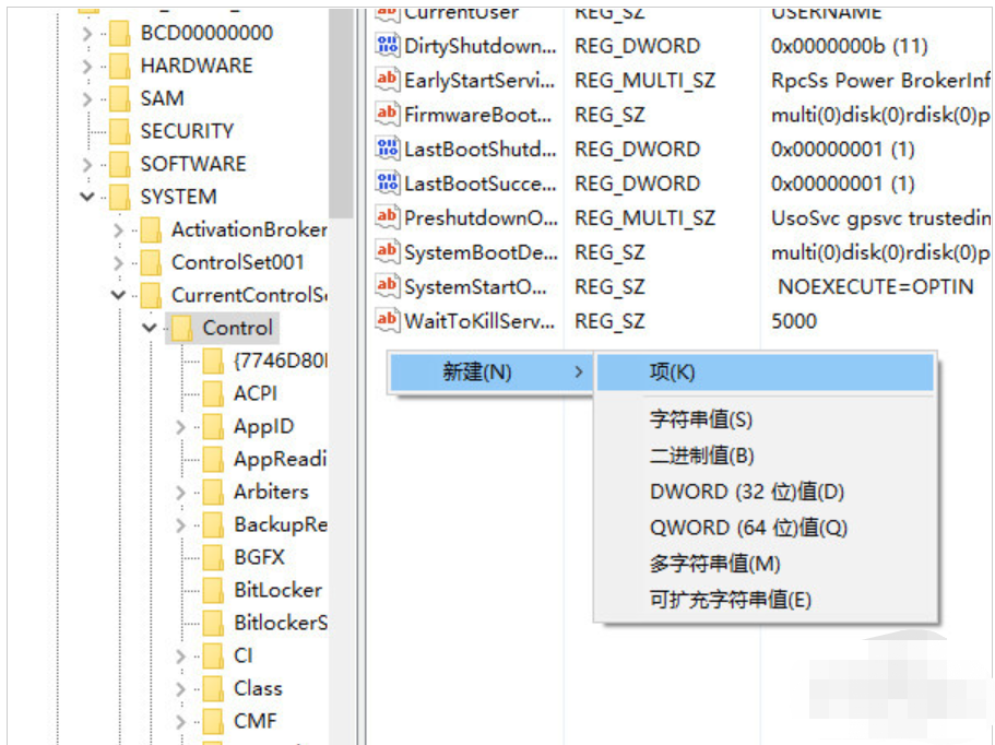 3、新建方法。右鍵點(diǎn)擊“Control”(或者直接在右側(cè)空白區(qū)域點(diǎn)擊右鍵),然后依次點(diǎn)擊新建-項(xiàng)(如圖)