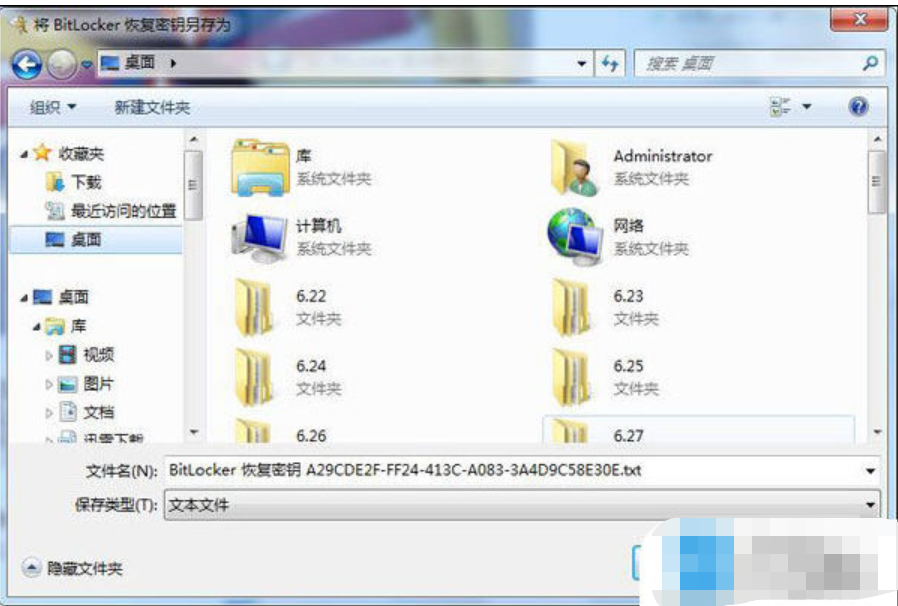 4、然后將BitLocker恢復密鑰另存為一個文本,找自己存放的位置即可。