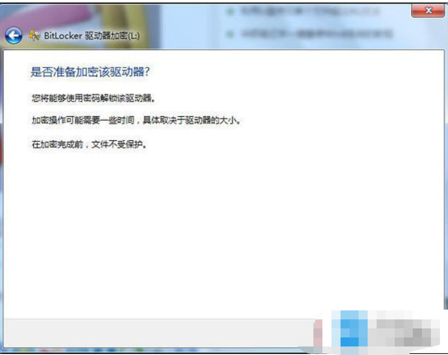 5、彈出提示窗口,點擊啟動加密按鈕,如圖: