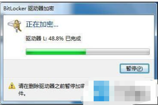 6、靜靜等待u盤加密過程,在此過程中不要拔出u盤也不要關(guān)閉計算機,等待加密完成,速度稍微有點慢。如圖: