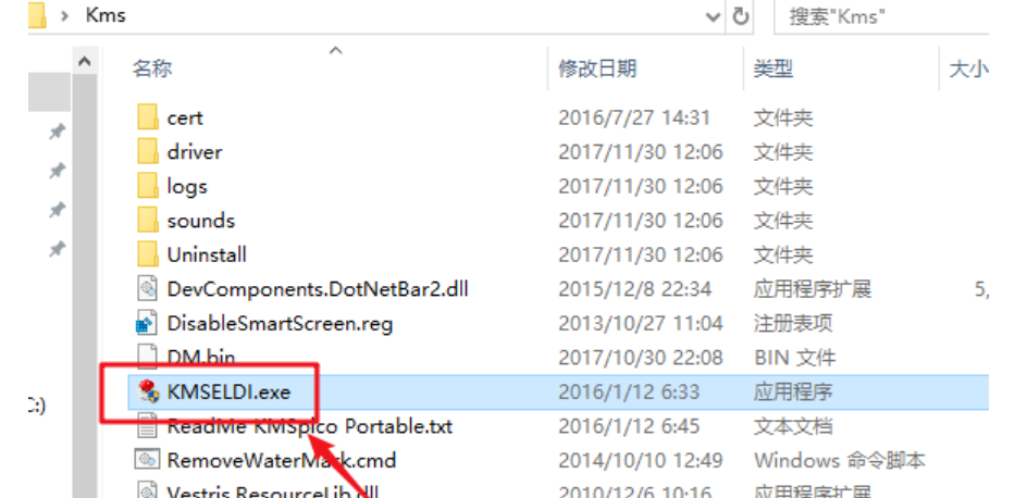 2. 這里使用的Kms激活工具是kmseldi,是綠色軟件,不需要安裝,解壓完成后找到主程序kmseldi.exe。