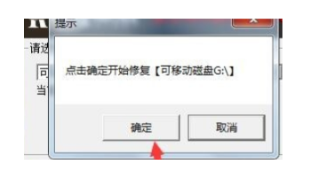 2,之后出現(xiàn)提示窗口點擊“確定”,金士頓U盤修復(fù)工具就會自動開始修復(fù)U盤