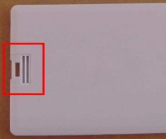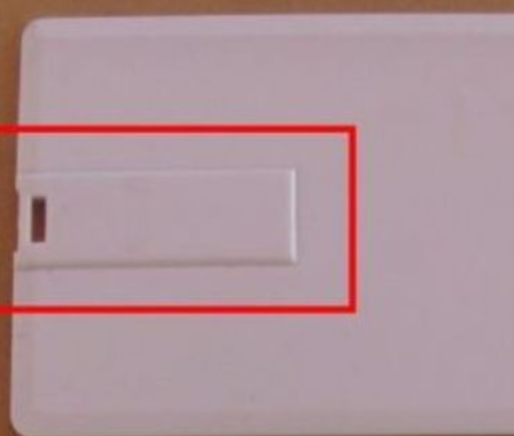 1、在卡片式U盤上找到一個凸起或者有縫隙的地方,朝外按或者扣,讓卡片式U盤彈出USB接口。
