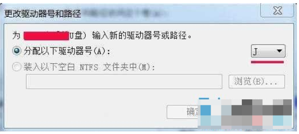 4、然后點(diǎn)分配以下驅(qū)動(dòng)號(hào)后面的框,選擇一個(gè)電腦其他硬盤或者磁盤沒(méi)有被使用過(guò)的盤符,比如J盤,然后點(diǎn)確定。