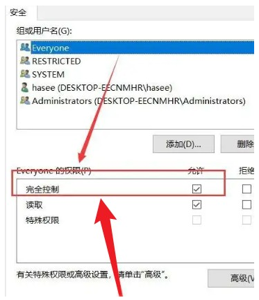 3、在everyone的權(quán)限下,設置允許“完全控制”。