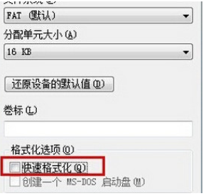 5、在彈出的格式化磁盤窗口中取消勾選“快速格式化”,再點(diǎn)擊“開始”按鈕,如下圖所示: