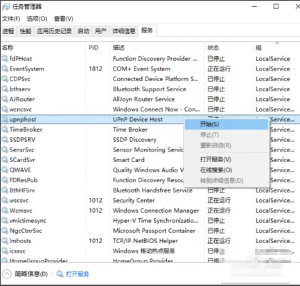 3. 任務(wù)管理的服務(wù)選項(xiàng)中找到UPnP服務(wù)和其依賴的SSD Discovery Service服務(wù)。