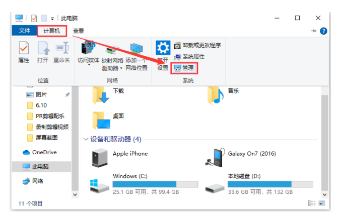 3、如果還沒解決,那就打開「此電腦」,點(diǎn)擊「計(jì)算機(jī)」→「管理」。
