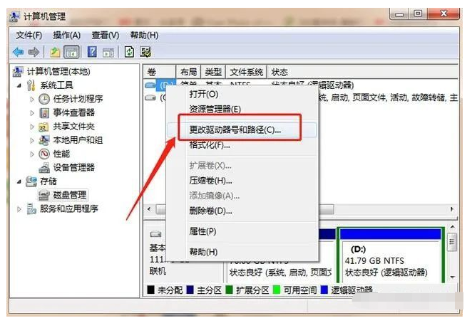 1、如果U盤在電腦內(nèi)無法打開,則鼠標(biāo)右鍵【此電腦/計(jì)算機(jī)】,選擇【管理】進(jìn)入磁盤內(nèi),然后點(diǎn)擊選擇【磁盤管理】。然后再右鍵U盤,選擇【更改驅(qū)動(dòng)器號(hào)和路徑】,對(duì)故障內(nèi)容進(jìn)行修復(fù)。