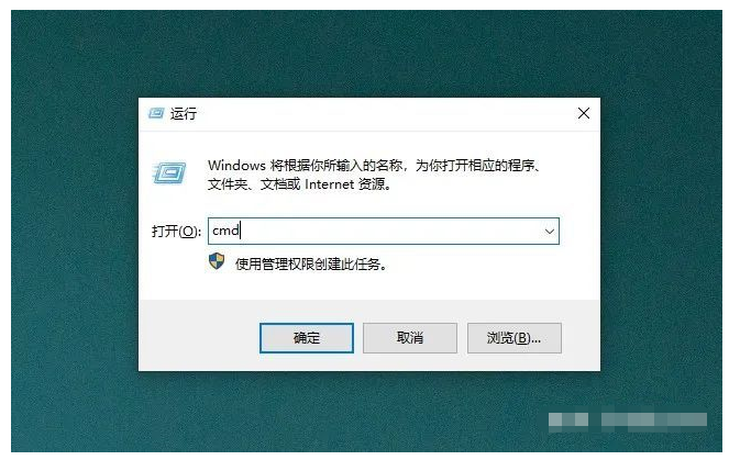 首先,將U盤連接電腦,然后在鍵盤上按下快捷鍵【win+R】,彈出運(yùn)行窗口后,輸入【cmd】,點(diǎn)擊下方【確定】進(jìn)入運(yùn)行程序。