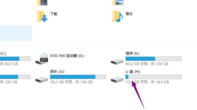 2、鼠標(biāo)右鍵點(diǎn)擊u盤。