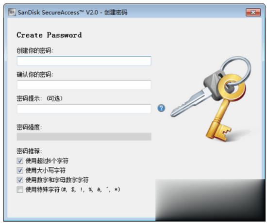 此軟件只適用于閃迪的U盤,使用方式很簡單,打開后直接對U盤進(jìn)行加密碼,自行設(shè)置密碼后就會(huì)出現(xiàn)一個(gè)專用的密碼保險(xiǎn)箱,只需要把重要文件拖入就行,忘記密碼或沒有密碼無法打開。