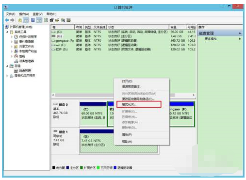 3、接著在U盤上右鍵單擊,選擇“格式化”
