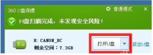 1、插入U盤到電腦的usb接口,確保電腦端安裝了360殺毒,將會自動彈出U盤保鏢。