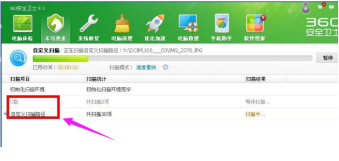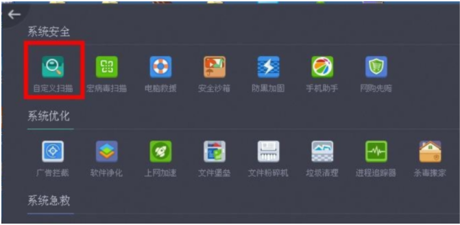 3、點擊自定義掃描,進入到自定義掃描頁面;