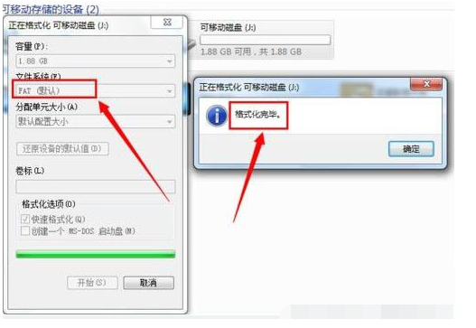 4、當(dāng)出現(xiàn)上述錯(cuò)誤提示時(shí),由于大面板壞道的產(chǎn)生,造成U盤可用容量減少,因此只能使用“Fat”文件系統(tǒng)進(jìn)行格式化U盤。