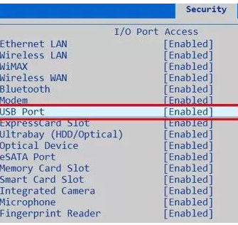2、選中“USB Port”并回車,再將它設(shè)置為“Enabled”,最后按下F10保存即可。