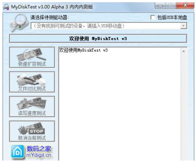 MyDiskTest是一款U盤/SD卡/CF卡等移動(dòng)存儲(chǔ)產(chǎn)品擴(kuò)容識(shí)別工具,可以方便的檢測(cè)出存儲(chǔ)產(chǎn)品是否經(jīng)過擴(kuò)充容量,以次充好,還可以檢測(cè)FLASH閃存是否有壞塊,是否采用黑片,不破壞磁盤原有數(shù)據(jù),并可以測(cè)試U盤的讀取與寫入速度。